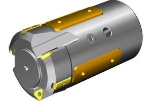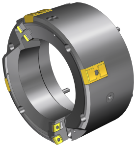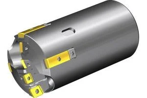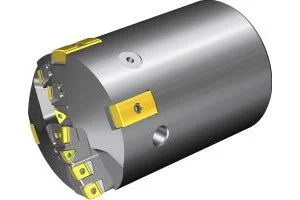 Telibefúró, cserélhető keményfém lapkával és vezetőlécekkel.