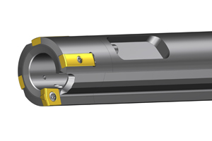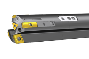Egyélű magfúró szerszám, cserélhető keményfém lapkával és vezetőlécekkel. |